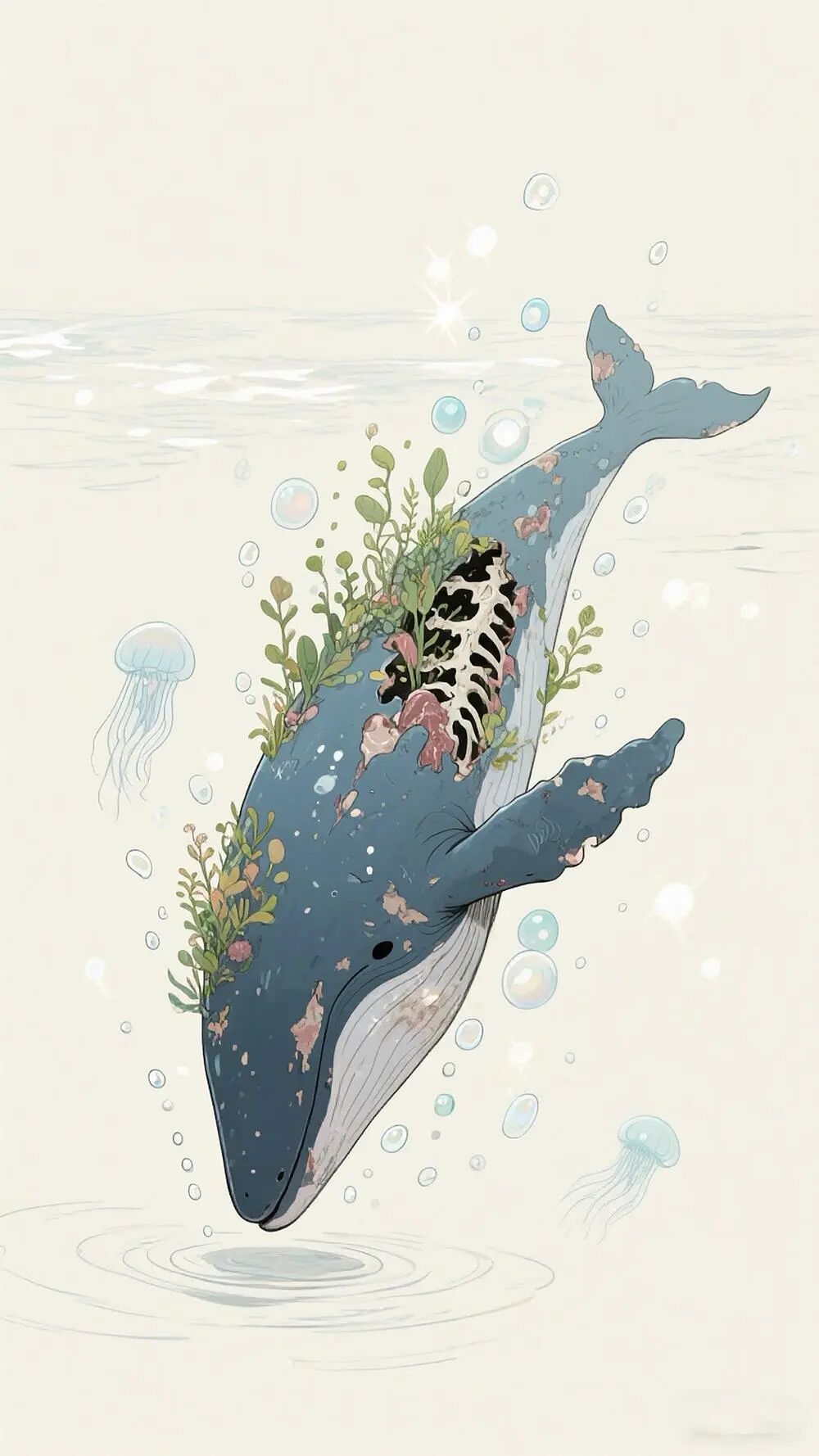 从生到死,蓝鲸都深刻影响着海洋生态。 其庞大的身躯不仅在生命过程中维系着食物网的平衡,在生命终结后,沉入海底的尸体会形成壮观的“鲸落”。在漫长的腐烂过程中,巨量的碳和营养物质被释放,如同为深海生物建立了一座“温柔孤岛”,真正诠释了何为“巨鲸落,万物生”。